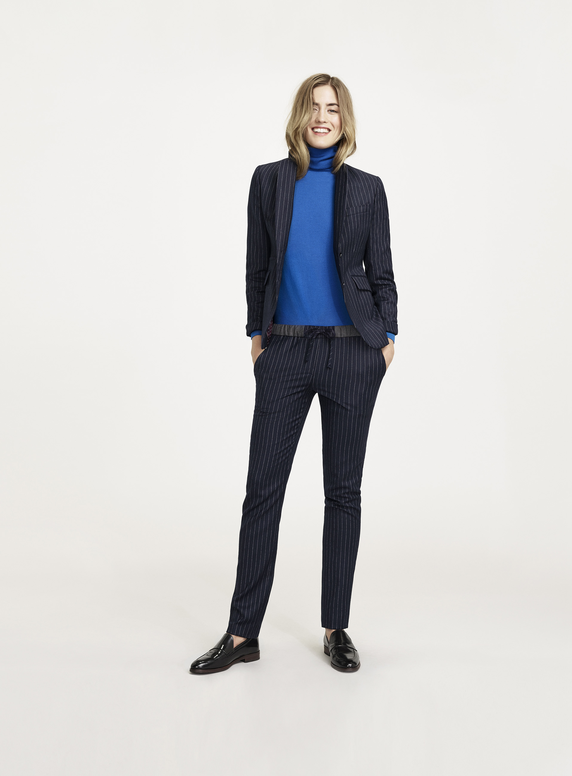 Mit einem Freizeitanzug können Sie dem Wochenende entspannt ins Auge blicken. Der sportliche Blazer mit weinroten Wildlederelementen sorgt für bequeme Eleganz. Mit seinem Innenfutter in klassischem Foulardmuster und einem Kordelzug an der Taille sowie den grau melierten Hosen mit Nadelstreifen verleiht dieser Anzug Ihrer täglichen Garderobe einen Hauch von weltläufiger Raffinesse.