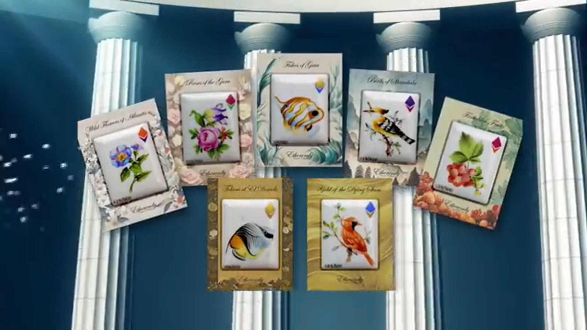 Physische Artefakte der Etherendy Premier Kollektion.
