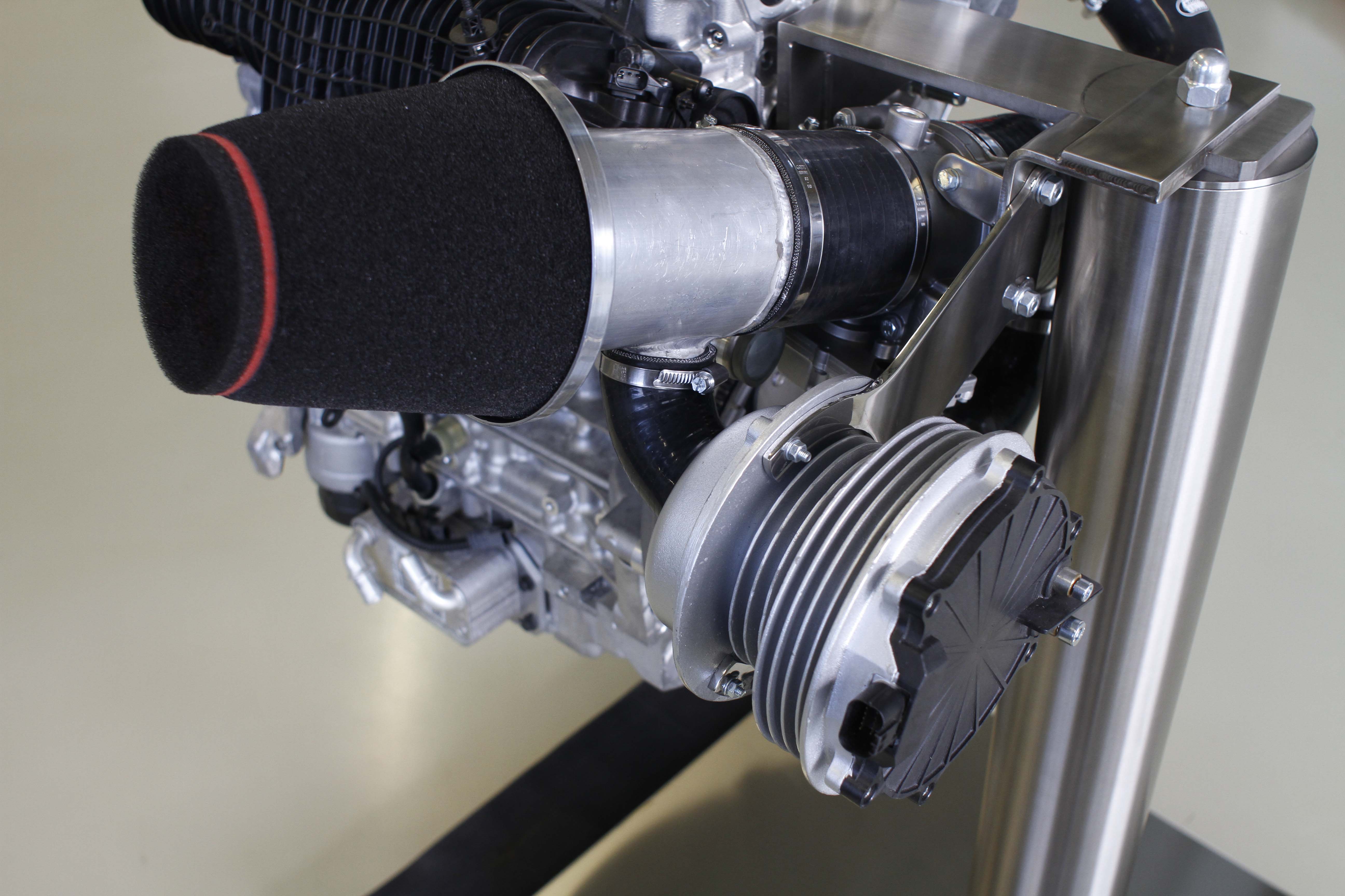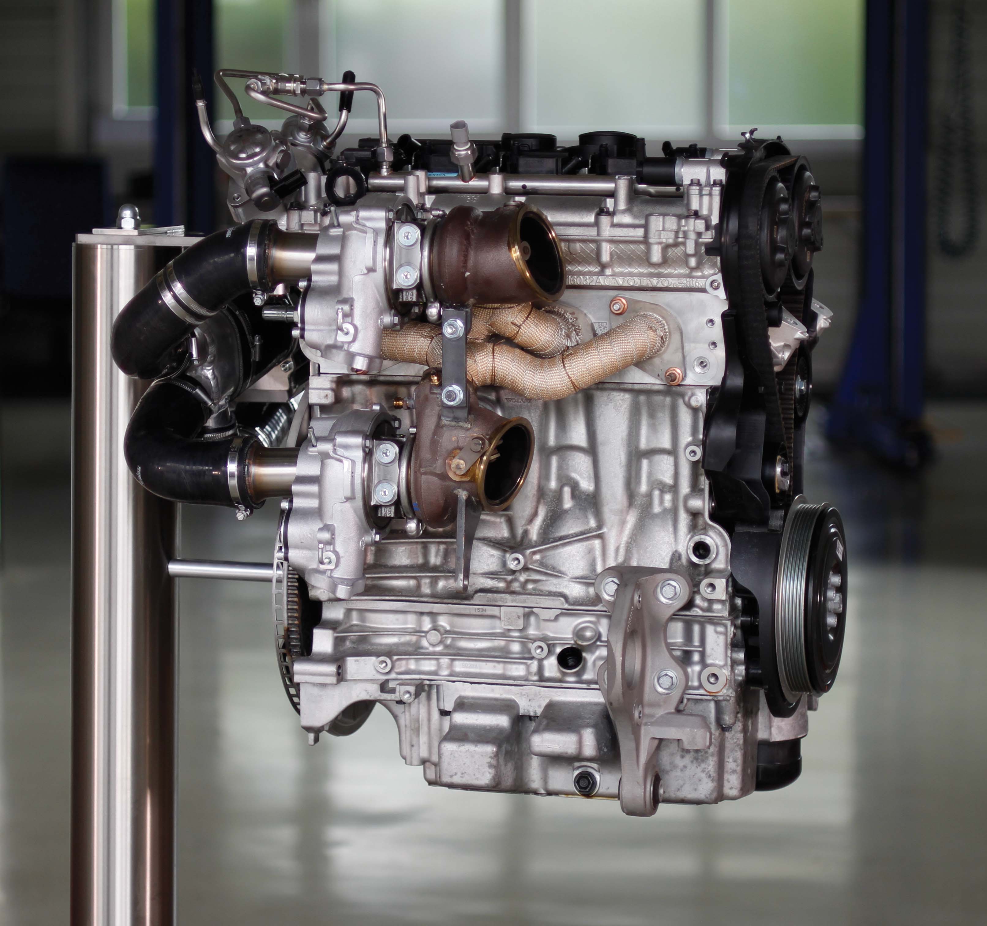 Es un concepto que se basa en un conjunto de tecnologías que no suelen encontrarse en un motor de cuatro cilindros. El motor utiliza dos turbos paralelos, que son alimentados por un turbocompresor eléctrico. El aire comprimido de esta unidad se utiliza para cargar los dos turbos paralelos, en lugar de alimentar a los cilindros. El combustible se alimenta mediante una bomba de combustible dual que funciona a una presión de 250 bares. Con esta densidad de potencia, su instalación de triple propulsión y un sistema de combustible único, ofrece una conducción muy dinámica y sin retrasos del turbo en comparación con los motores monoturbo.