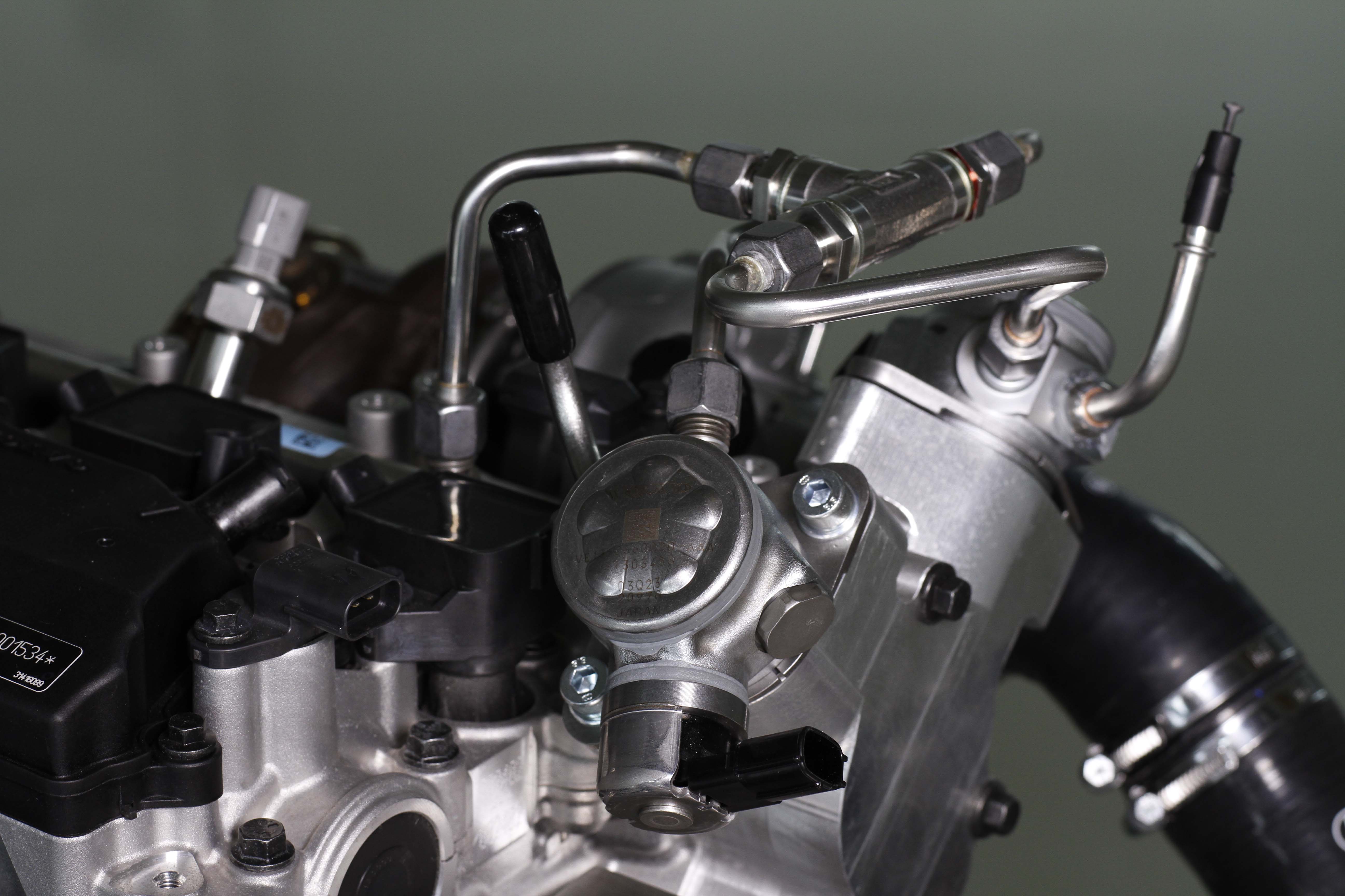 Es un concepto que se basa en un conjunto de tecnologías que no suelen encontrarse en un motor de cuatro cilindros. El motor utiliza dos turbos paralelos, que son alimentados por un turbocompresor eléctrico. El aire comprimido de esta unidad se utiliza para cargar los dos turbos paralelos, en lugar de alimentar a los cilindros. El combustible se alimenta mediante una bomba de combustible dual que funciona a una presión de 250 bares. Con esta densidad de potencia, su instalación de triple propulsión y un sistema de combustible único, ofrece una conducción muy dinámica y sin retrasos del turbo en comparación con los motores monoturbo.