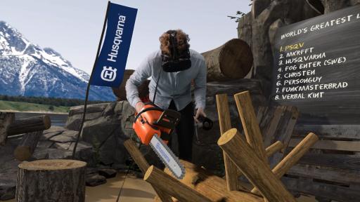 La experiencia Husqvarna RV lleva al jugador a un bonito paisaje en la montaña con un lago donde debe utilizar una motosierra Husqvarna 359 para eliminar 24 ramas de un tronco de 2,7 metros de largo. El jugador debe coger la motosierra y eliminar las ramas con precisión y rapidez. Al igual que un leñador profesional, el jugador debe desramar rápido y con precisión. Si las ramas no se eliminan adecuadamente, el jugador deberá volver atrás y rehacerlo, perdiendo tiempo.