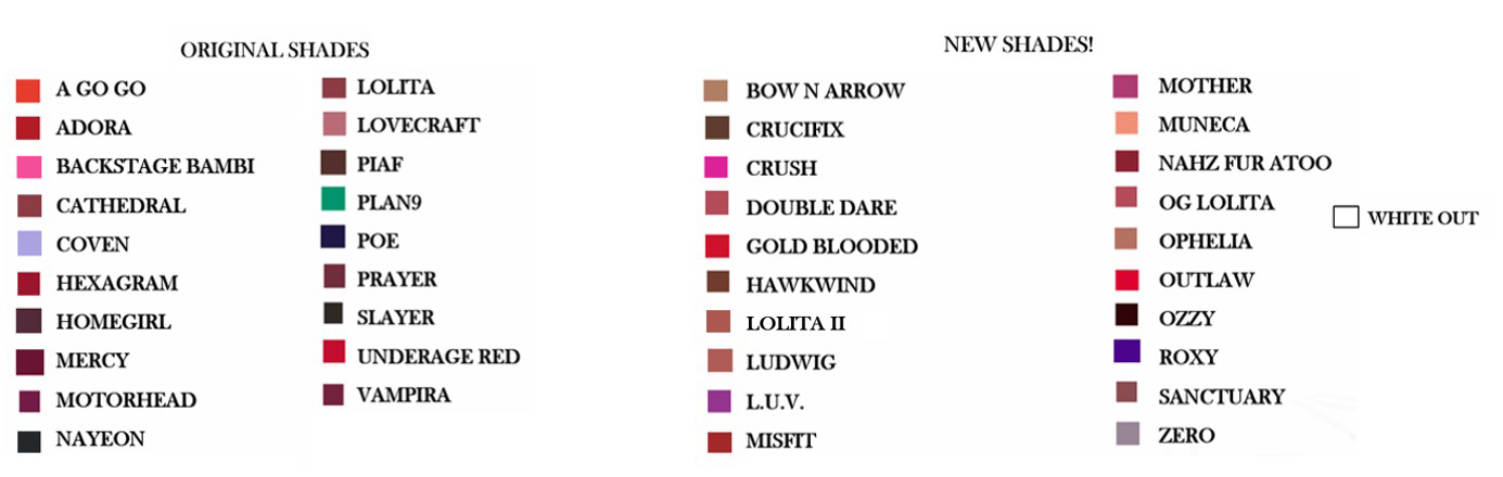 El nuevo pintalabios Studded Kiss Crème se lanza en 40 increíbles colores con 3 acabados brutales: satinado mate, brillo y metálico. La mayor y más disruptiva gama de colores que Kat Von D ha ofrecido nunca incluye éxitos de ventas atemporales, productos favoritos que ya no se vendían, iconos preciados de la colección de pintalabios Everlasting Liquid, y el novedoso White Out, un blanco opaco, inspirado en el arte, para usar como base o para mezclar y personalizar unos tonos de pintalabios perfectos y únicos. Desde tonos nude a brillantes, pasando por llamativas explosiones de color, Studded Kiss ofrece un amplio espectro para todas las personas.