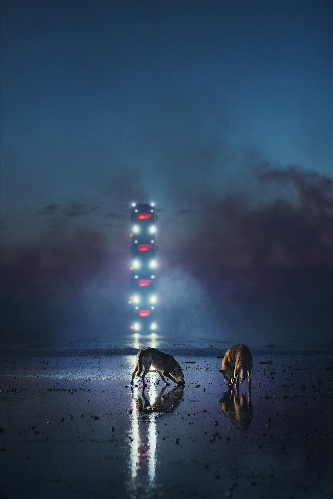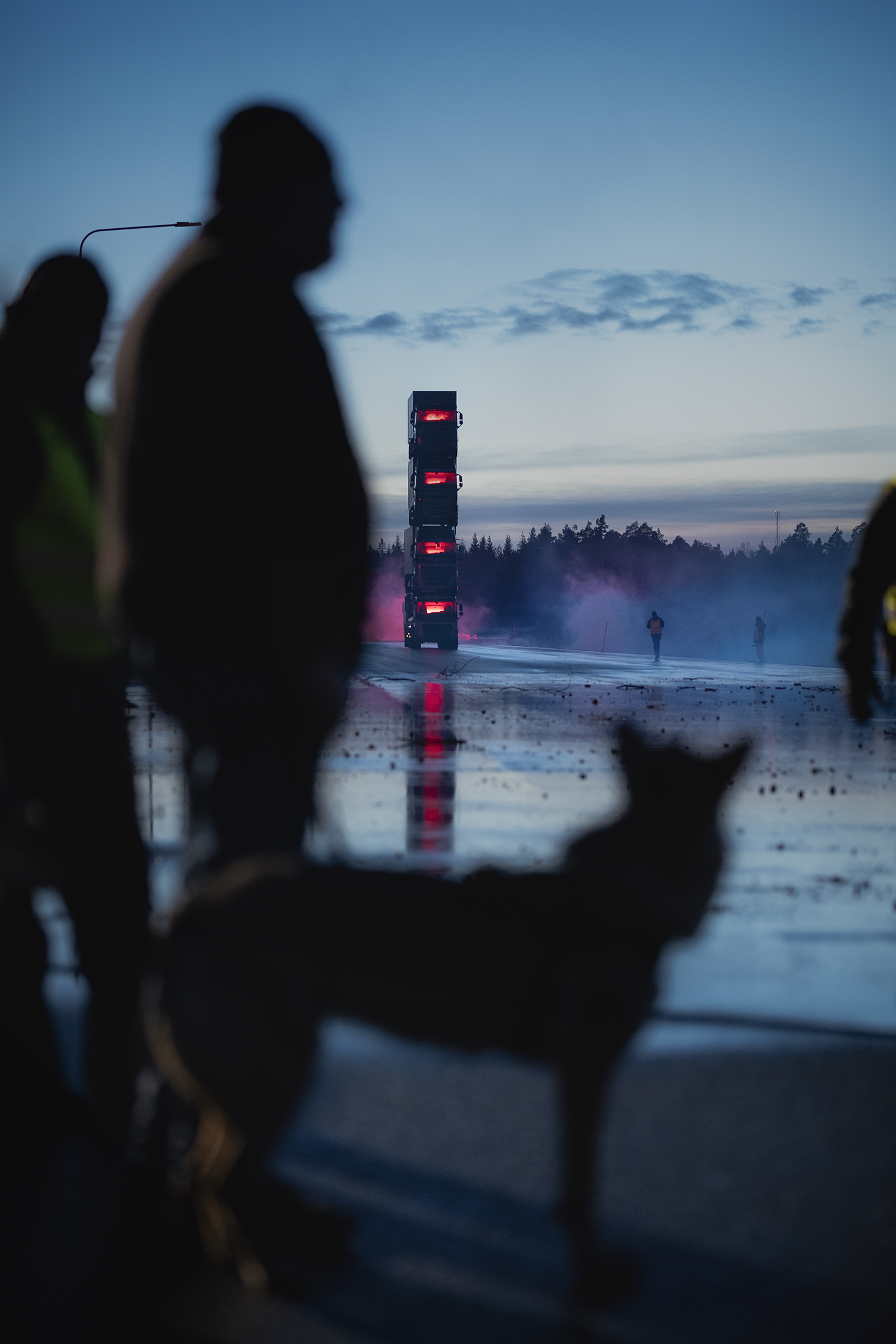 Volvo presenta cuatro camiones nuevos apilándolos uno encima de otro en un vídeo espectacular y, como colofón, coloca a su presidente en lo más alto
