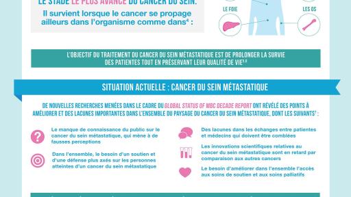 3 Réseau canadien du cancer du sein. 13 Facts Everyone Should Know about Metastatic Breast Cancer. Disponible au : http://mbcn.org/developing-awareness/category/13-things-everyone-should-know-about-metastatic-breast-cancer. Consulté le 5 avril 2016.