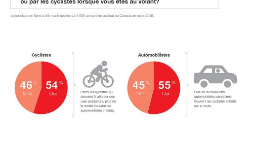 Les frictions entre les cyclistes et les automobilistes sont bien documentées. Selon un récent sondage national mené par State Farm Canada, 55 % des conducteurs canadiens jugent que les cyclistes qu’ils croisent sur leur chemin sont nuisibles. Cet « amour » est réciproque : un pourcentage presque similaire de cyclistes, soit 54 %, est à son tour agacé par les comportements des automobilistes.