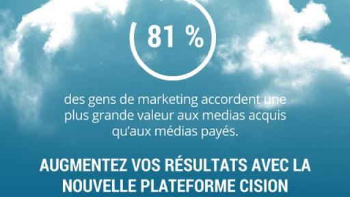 Selon Outsell Inc., 81 pour cent des responsables du marketing sont d’avis que les médias acquis sont plus efficaces, ou tout aussi efficaces, que les médias payés, et le pouvoir de générer des résultats commerciaux se déplace du côté des communicateurs. Les consommateurs continuent de faire confiance aux influenceurs en ligne et, parallèlement, se désintéressent des publicités de marque, ce qui incite les entreprises à chercher de plus en plus de nouveaux moyens d'exploiter la puissance des médias acquis, des relations avec les influenceurs et du marketing de contenu.Les capacités du Cision Communication CloudMC visent à permettre aux communicateurs de développer des relations enrichissantes avec les publics qui comptent le plus, de comprendre les tendances des conversations et de mobiliser les communautés d'acheteurs et d'influenceurs à orienter le comportement du client.