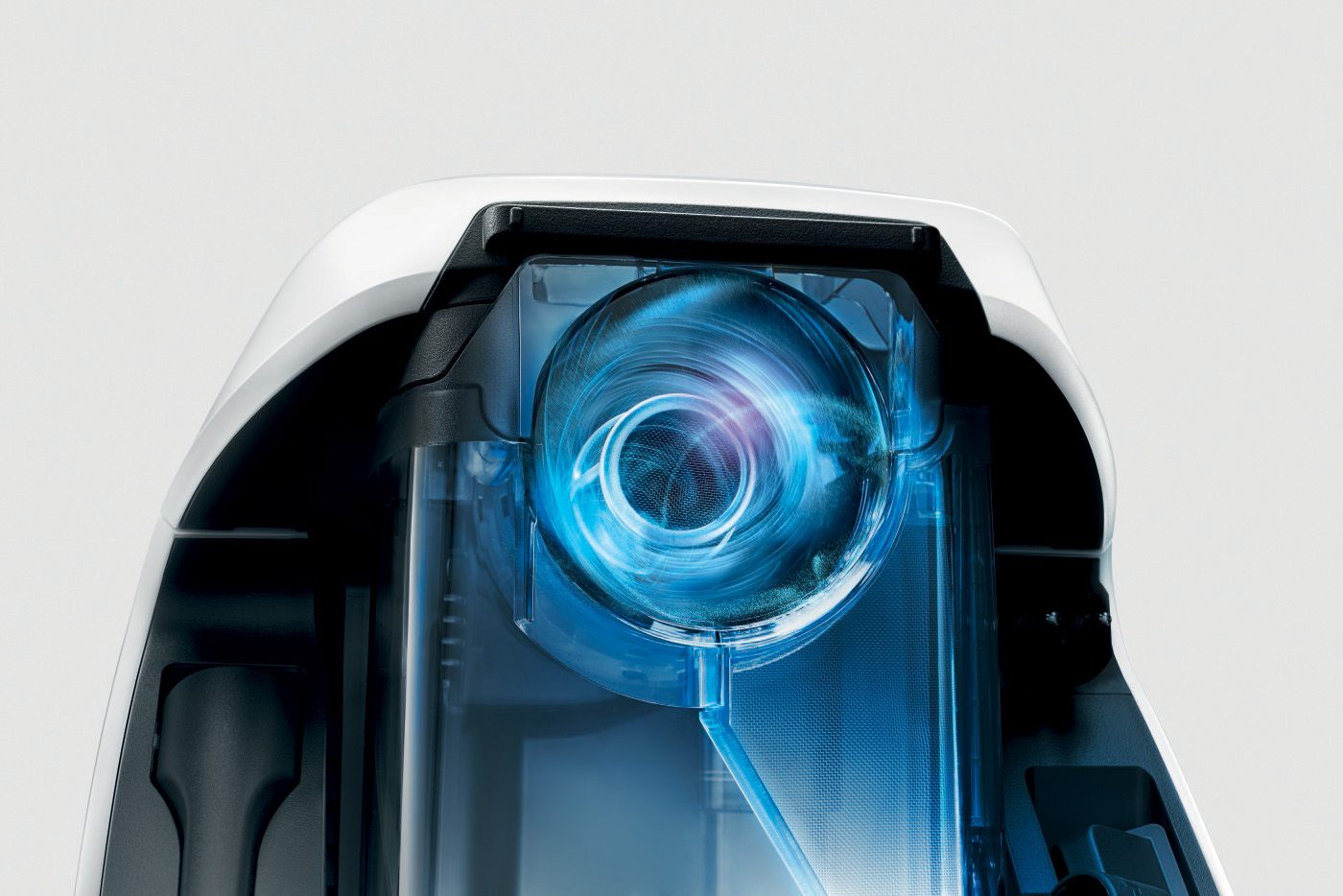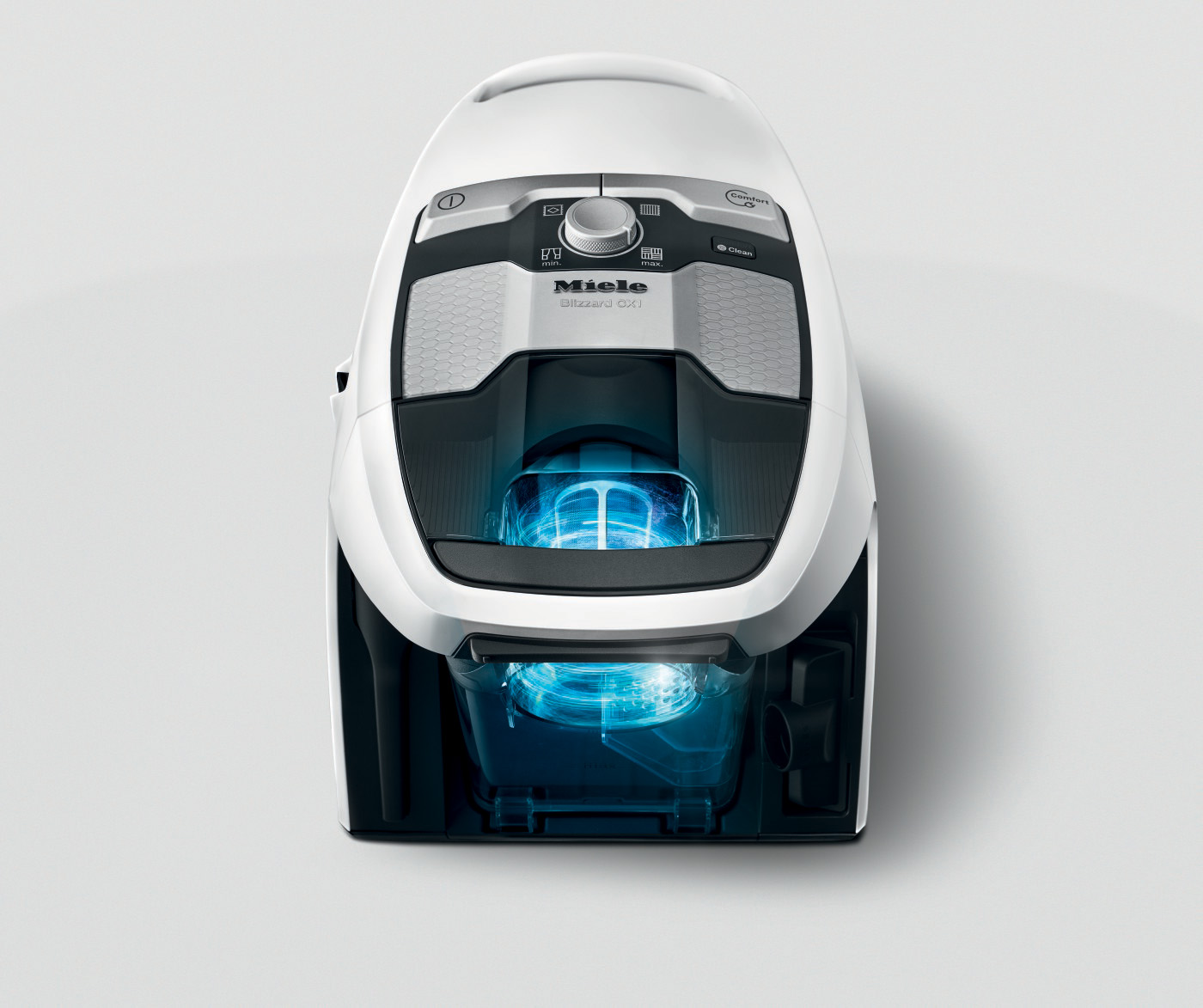 Miele a fabriqué le Blizzard selon une approche monocyclone nommée « technologie Vortex » selon laquelle l’air circule dans un seul cyclone. On obtient ainsi une performance de nettoyage exceptionnelle et des niveaux de bruit faibles grâce à quatre réglages de la puissance pour commander facilement l’utilisation de la puissance. Pour éviter que la poussière et la saleté ne retournent dans l’air, le Blizzard est doté d’un système de filtration à trois étapes incroyablement efficace.