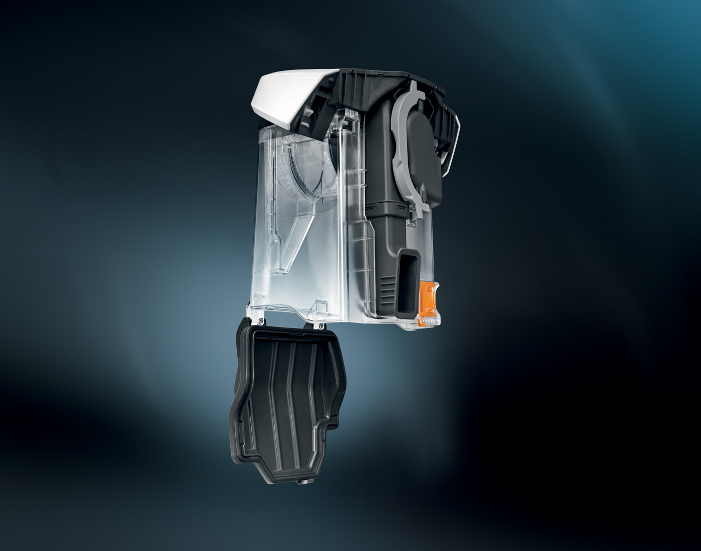 Dans la première étape de la filtration, les grosses particules sont soigneusement séparées de la poussière fine. Ensuite, la poussière est conservée dans le filtre plissé Gore® CleanStream® situé dans l’aspirateur. Au cours d’une utilisation normale, le contenant du filtre facile à retirer doit être rincé à l’eau courante une ou deux fois par année après que son nettoyage ait été indiqué par des capteurs. Le processus d’élimination hygiénique a été certifié par l’American IBR Laboratories des États-Unis, leader international en vérification des performances de filtration.