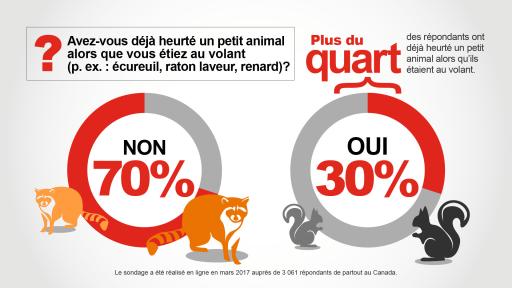 - Plus de 25 % des répondants au sondage ont déjà heurté un petit animal sur la route alors qu’ils étaient au volant.