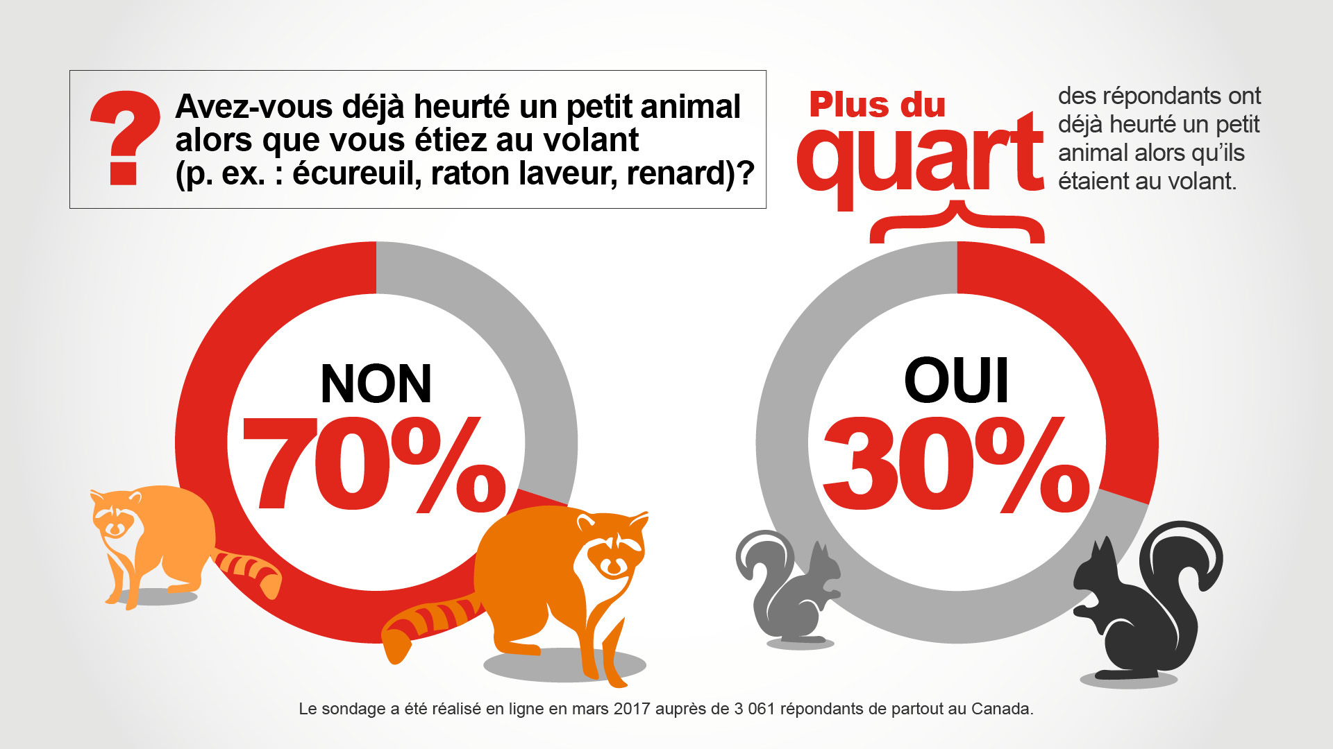 - Plus de 25 % des répondants au sondage ont déjà heurté un petit animal sur la route alors qu’ils étaient au volant.