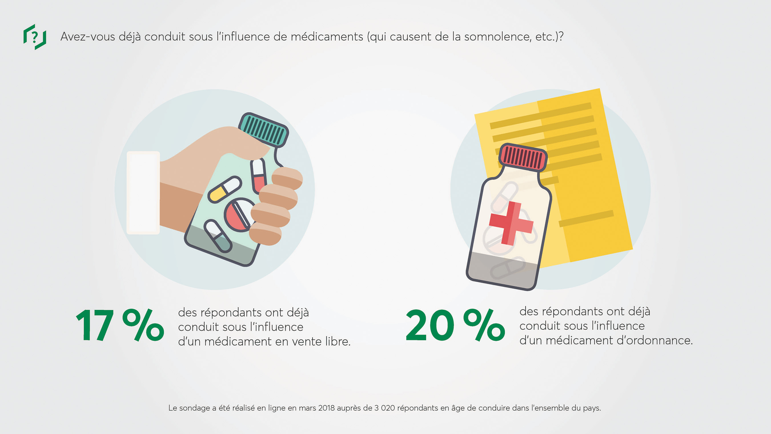 - Un conducteur canadien sur cinq admet avoir conduit au moins une fois sous l’influence d’un médicament d’ordonnance.