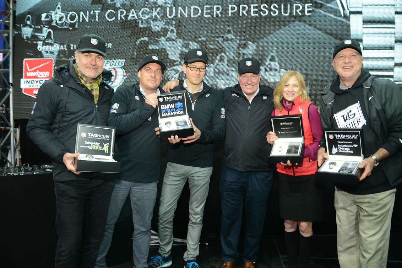 TAG Heuer s’associe aux courses de fonds : New York (TCS New York City Marathon), Chicago (Bank Of America Chicago Marathon), Boston (BAA boston Marathon) nouvellement signé, Berlin (BMW Berlin Marathon) et aussi Paris (Schneider electric Marathon de Paris), Oslo et Moscou. TAG Heuer marque ainsi un retour aux sources et se recentre sur son cœur de métier, les montres et chronographes sportifs, et son ADN, le sport, le challenge, la compétition et le dépassement de soi.
