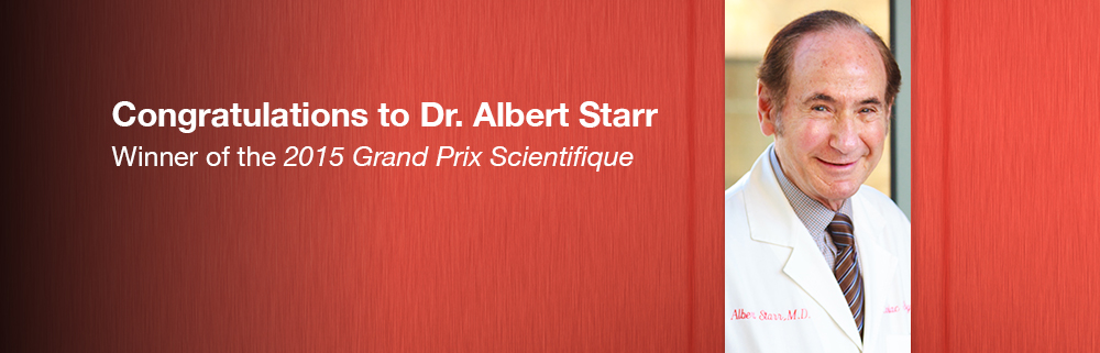 Le Grand Prix Scientifique est la distinction la plus prestigieuse dans le domaine de la recherche cardiovasculaire et figure parmi les prix scientifiques les plus renommés à l’échelle internationale. Il a été décerné au Dr. Starr par le comité scientifique de la Fondation en reconnaissance de ses travaux qui ont mené à la mise au point et l’implantation de la première valve mitrale en 1960. Cette innovation majeure a permis à des millions de patients de bénéficier d’un remplacement valvulaire et de nombreuses avancées technologiques qui se sont succédé au cours des 55 dernières années.