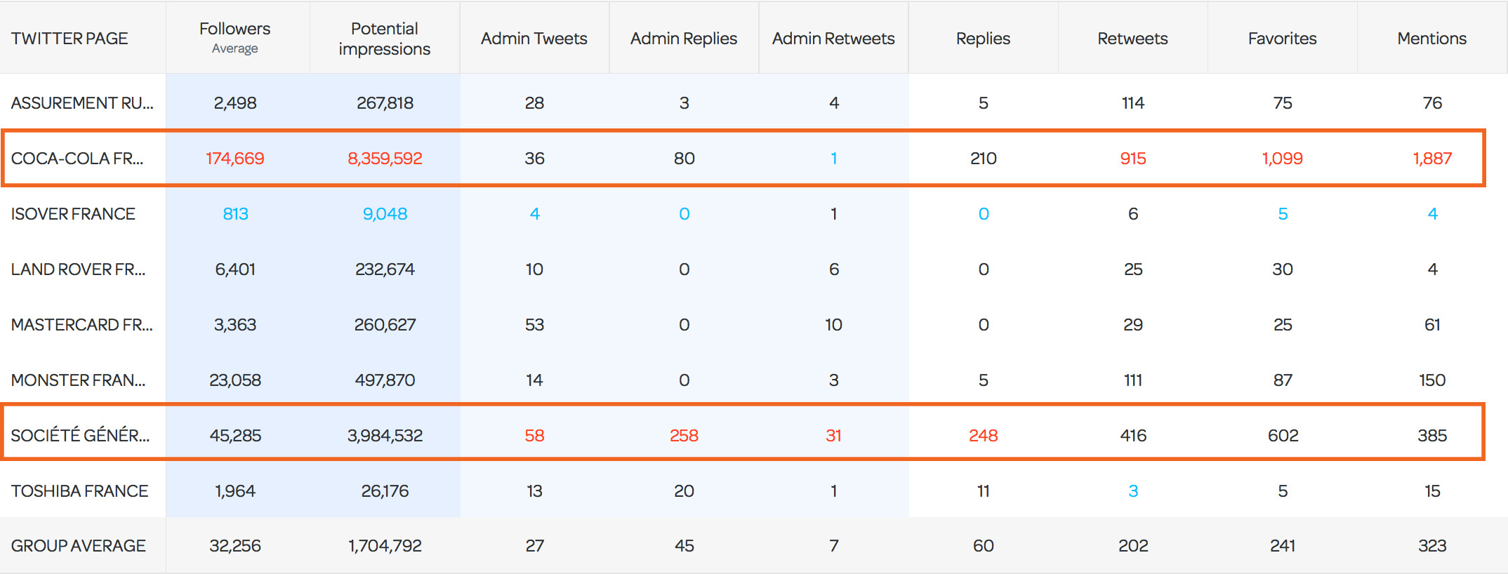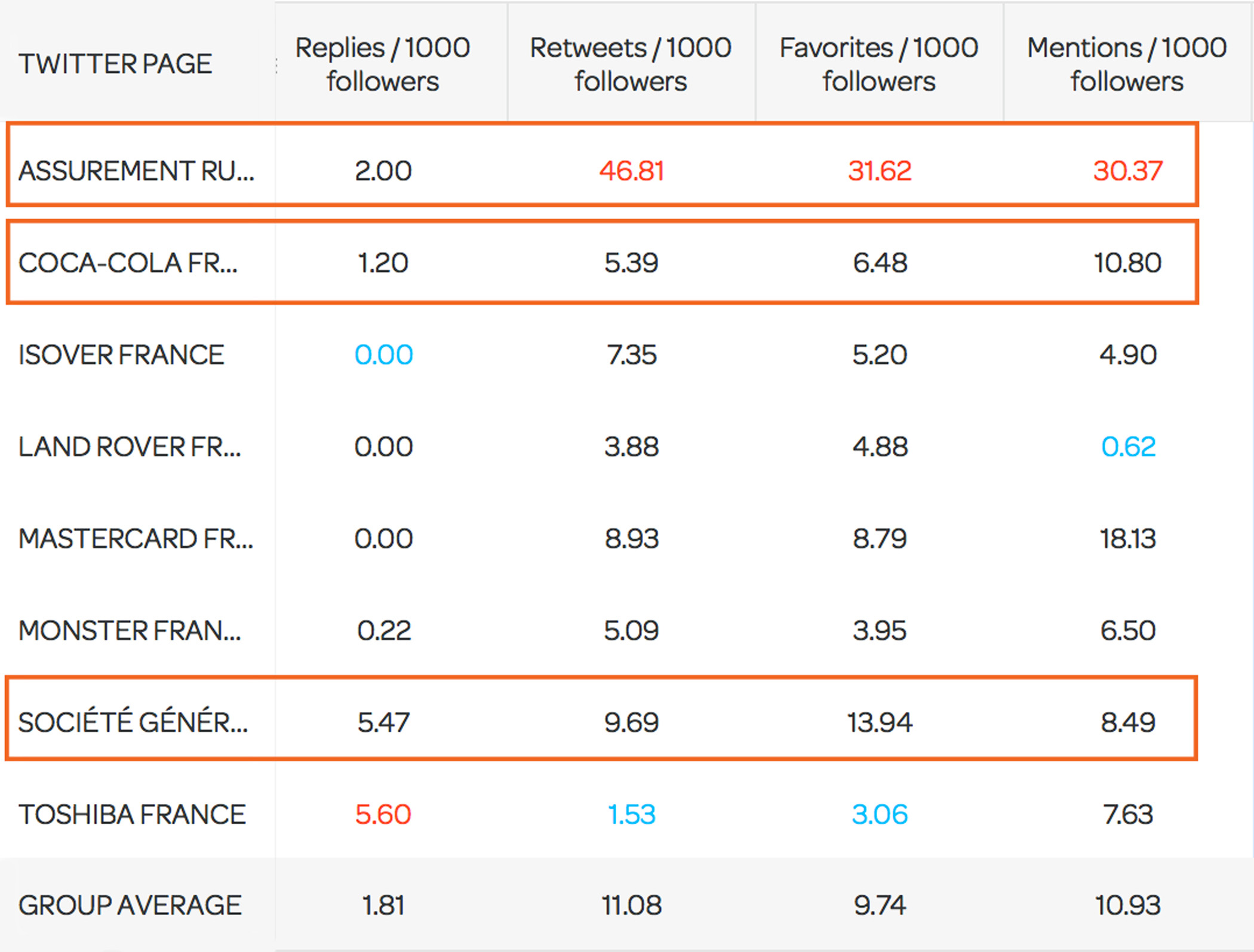 Sa ligne éditoriale variée et sa bonne fréquence de publication (58 tweets publiés) déclenchent le plus grand nombre de retweets, favoris et mentions du groupe, juste derrière Coca-Cola.