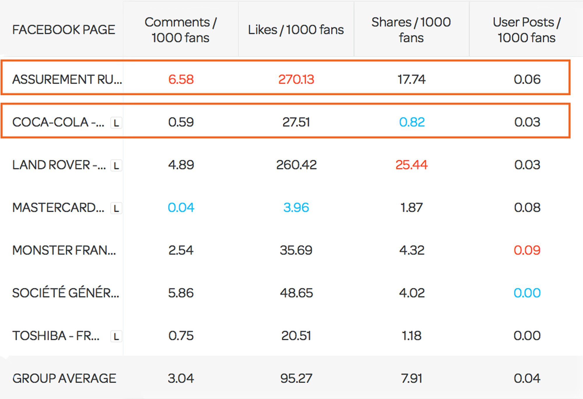 Néanmoins, proportionnellement, Assurément Rugby - qui possède 86 443 fans, soit 36 fois moins, a davantage engagé : sur 1000 fans, la page dédiée au rugby de l’assureur obtient bien plus de commentaires, de likes et de partages que Coca-Cola. Si la page venait à faire une campagne de recrutement, elle occuperait davantage le territoire que son rival grâce à ses bonnes pratiques d’engagement.
