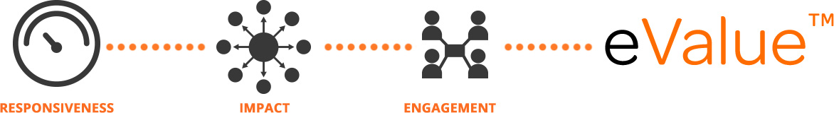Le score eValue™ mesure l’efficacité de la performance globale d’une marque sur Facebook, Twitter, YouTube et Instagram, sur une échelle de 1 à 100. Il s’agit de l’agregation des 3 sous-scores d’Engagement, d’Impact, et de Réponse qui, combinés ensembles, créent un indicateur clé de performance de haut niveau. Nos sous-scores sont calculés à partir d’une centaine de métrics, benchmarkées avec une database de 100,000 marques vérifiées manuellement sur chaque réseau.