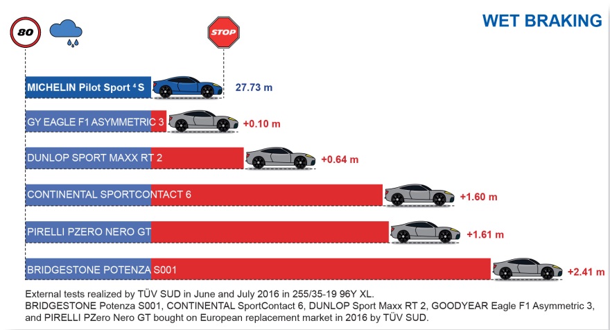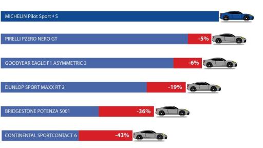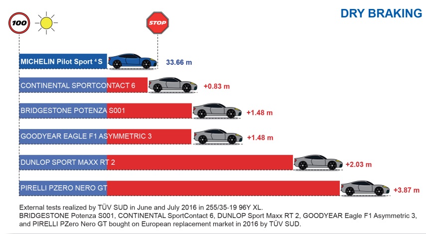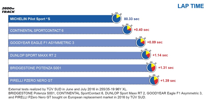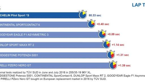 MICHELIN Pilot Sport 4 S est le résultat d’un savoir-faire unique. Il est développé par des ingénieurs passionnés par leur métier, et redéfinit les standards de la catégorie. Adapté pour évoluer au meilleur niveau sur route mais également sur circuit, il se positionne d’ores et déjà comme le numéro 1. Lors de tests réalisés par l’organisme indépendant TÜV SÜD, en Allemagne, le MICHELIN Pilot Sport 4 S surpasse ses cinq concurrents sur les performances clé.