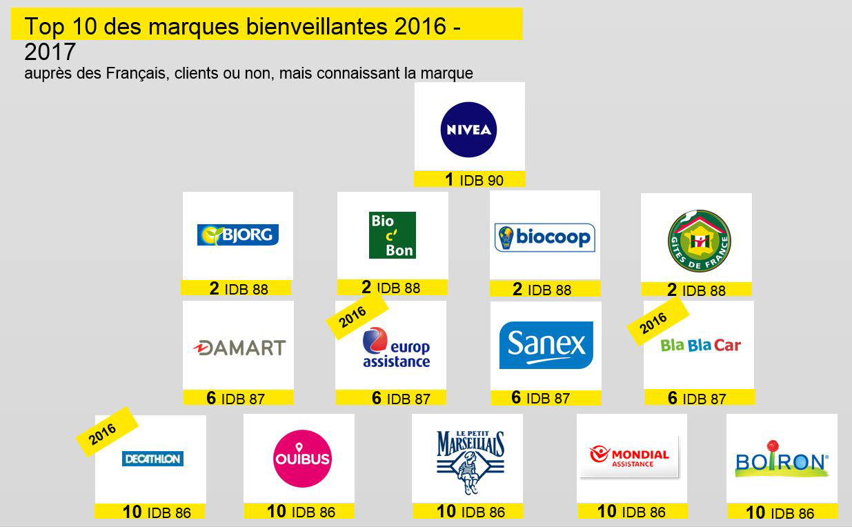 BVA et Change viennent de livrer les résultats de la 2ème édition de l’indice de bienveillance des marques. Une étude portant sur 150 marques de 20 secteurs et sur 5 000 personnes qui s’est déroulée du 16 au 26 Janvier 2017