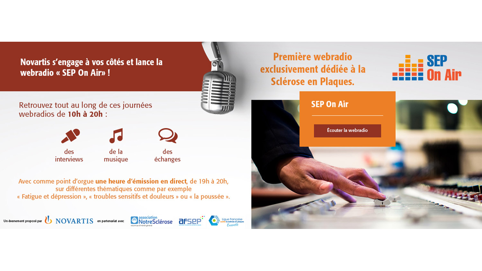 Pour la Journée Mondiale de la sclérose en plaques le 30 mai 2018 Novartis lance « SEP on Air », la première web radio dédiée à la SEP