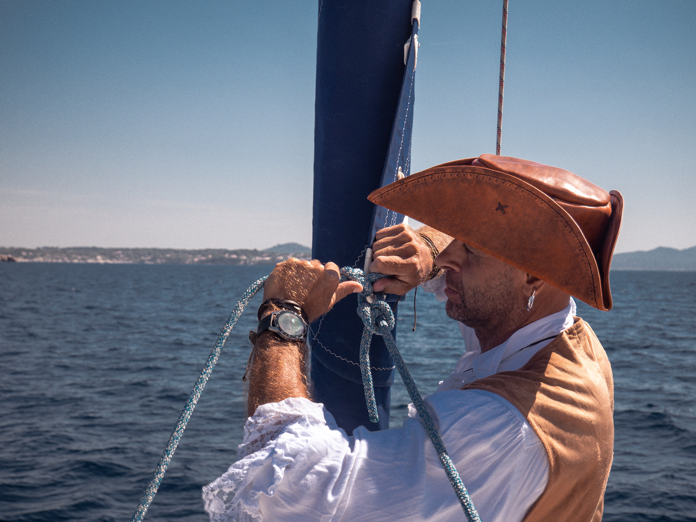 Le Pirate Blanc attache une voile