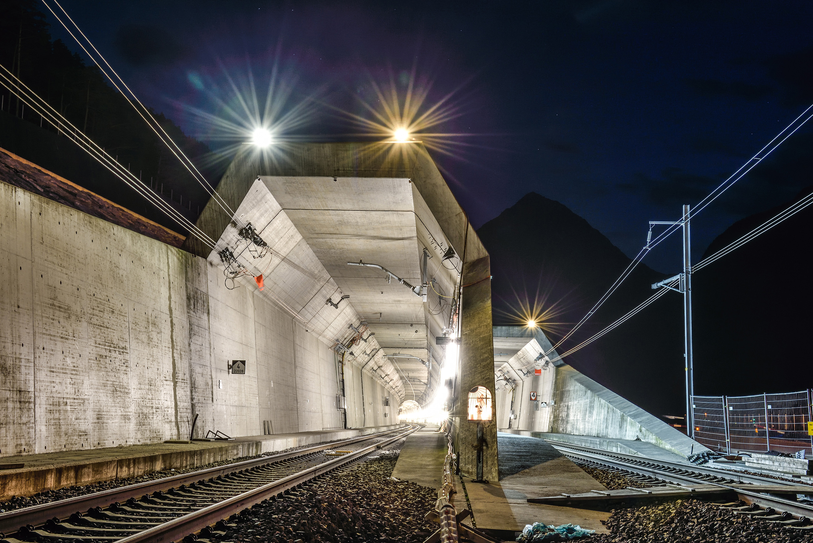 Il 1° giugno 2016, con una grande celebrazione, la Svizzera inaugura il tunnel ferroviario più lungo e profondo del mondo nella regione del Gottardo. Con i suoi 57 km di lunghezza, la galleria si snoda a profondità che toccano i 2.300 metri sottoterra. Questo progetto, esemplare in termini di efficienza e sostenibilità del traffico sull’asse nord-sud, consente di oltrepassare le Alpi in soli 17 minuti. La nuova ferrovia di pianura non solo velocizza il viaggio attraverso il massiccio del Gottardo, ma spiana anche il terreno a treni più lunghi e pesanti. Dopo 17 anni di lavori, la committente AlpTransit San Gottardo SA, che, da buona svizzera, ha rispettato i budget prestabiliti, affida puntualmente il tunnel ultimato alle Ferrovie Federali Svizzere FFS. Alla rete di trasporti pubblici più fitta del mondo si aggiunge così un’opera pionieristica fondamentale.