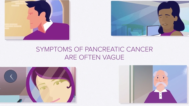 I sintomi comuni comprendono dolore a metà della schiena, una inspiegabile perdita di peso, itterizia e dolore allo stomaco. Anche se la causa della maggior parte dei casi di tumore al pancreas è sconosciuta, vi sono prove che il fumo, l’essere sovrappeso, una storia familiare di tumore al pancreas e pancreatiti croniche può aumentare il rischio dell’individuo a sviluppare la malattia. Non essendo al momento disponibile uno screening per il tumore del pancreas, chiunque avverta uno o piú sintomi persistenti, deve segnalare il tumore del pancreas a chi si occupa della sua salute. I pazienti ai quali viene diagnosticato in modo precoce, quando l’intervento chirurgico è solo una delle possibilità, hanno la possibilità di vivere cinque anni e oltre.