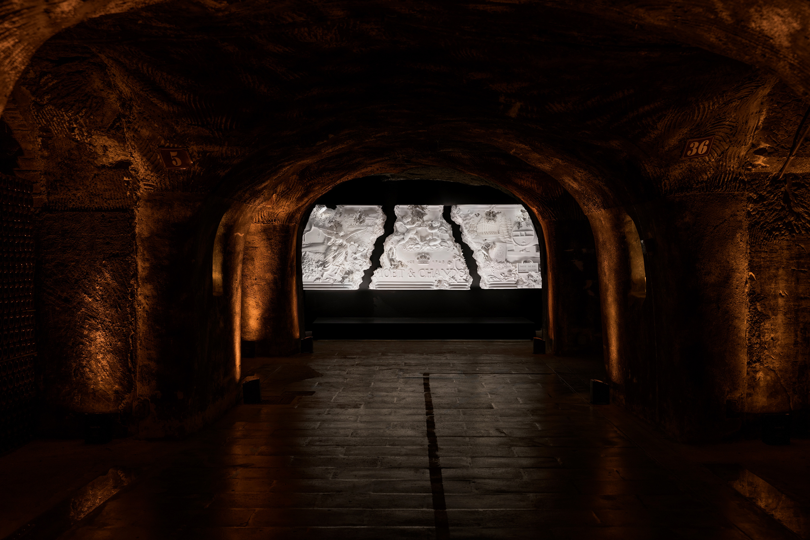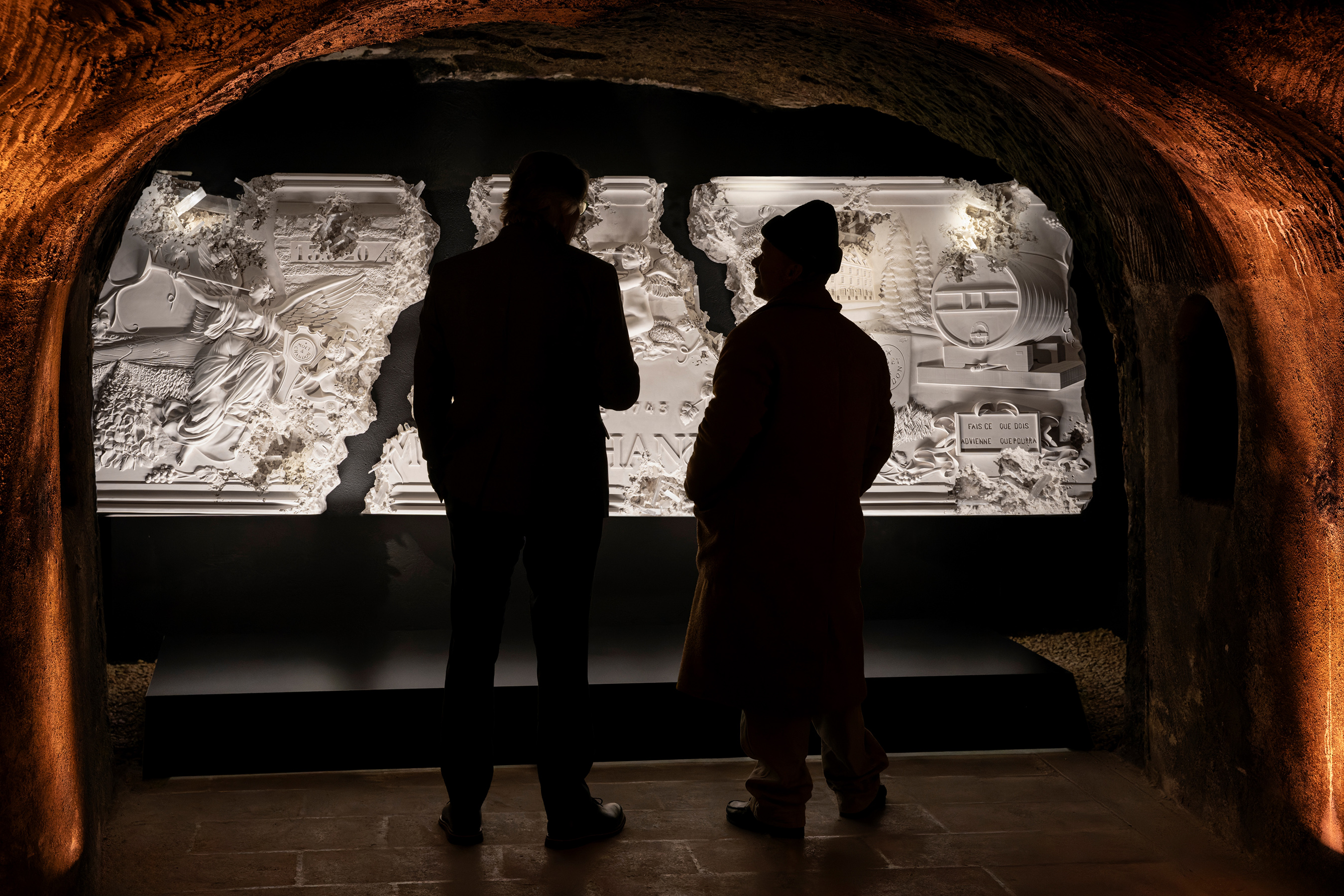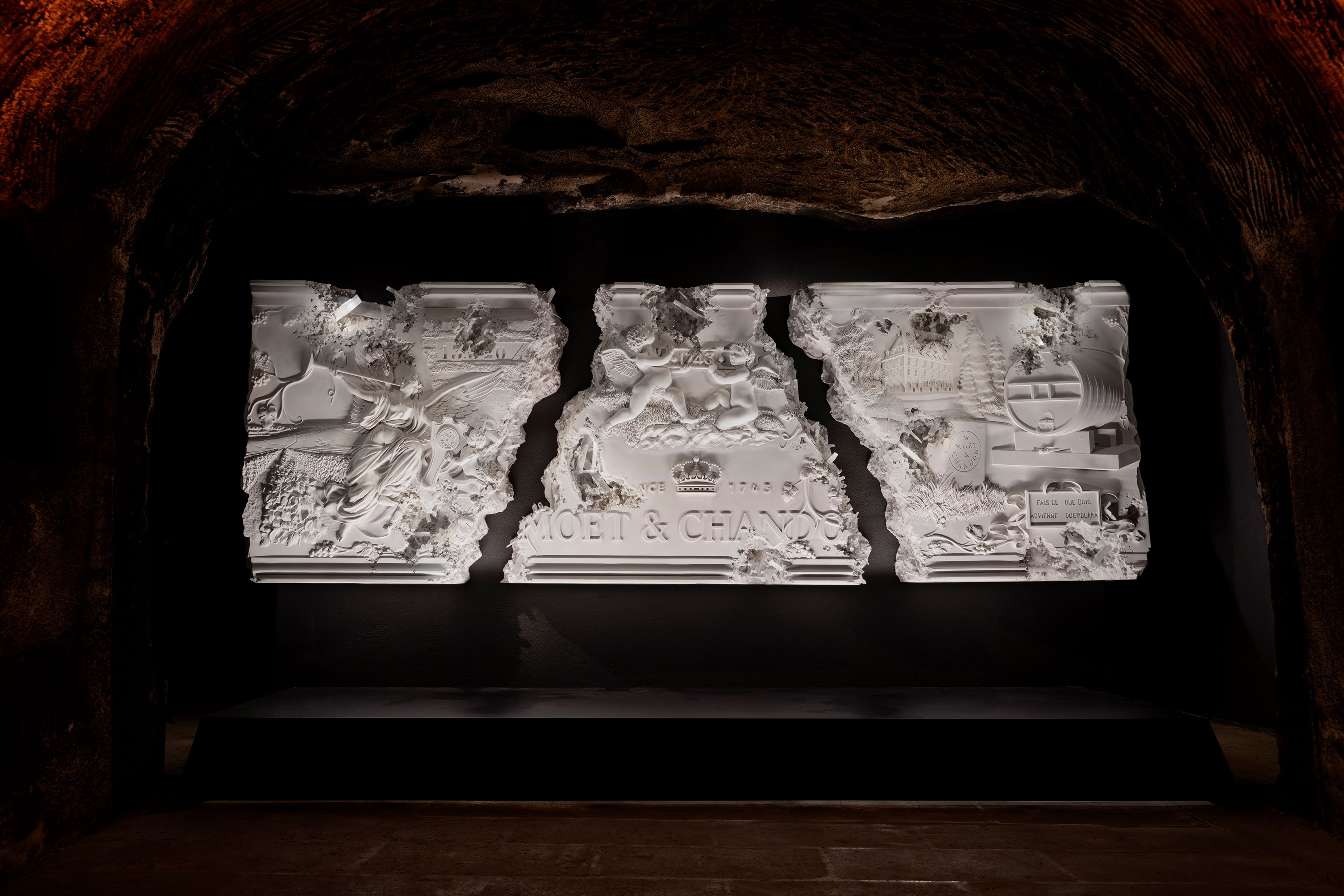 Il bassorilievo di Daniel Arsham può essere apprezzato da tutti i visitatori delle storiche cantine della Maison. Le visite partono da 40 euro a persona.