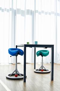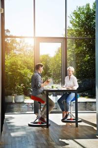 I en Back App-stol sitter du litt høyere, slik at hoftene hviler i omtrent 125 graders vinkel. Denne rake sittestillingen gjør det enkelt å veksle mellom sittende og stående posisjon, og korsryggen din får den samme naturlige holdningen som når du står oppreist. De unike autonome bevegelsene trener ryggen din mens du sitter og gir balansetrening som gjør mirakler for ryggen din. Det er vitenskapelig bevist at man får mindre ryggsmerter av denne stolen enn av vanlige stoler. Du finner forskningsresultatene her: http://backapp.eu/en/documented-effects