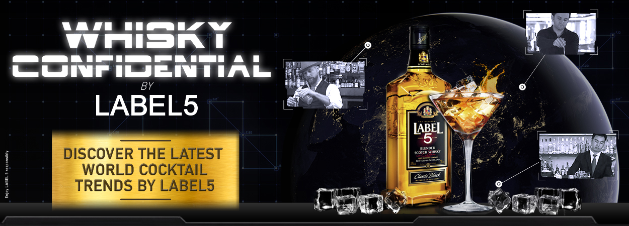 Bathgate, na Escócia, 29 outubro, 2015 - A marca líder de whisky escocês LABEL 5 revela uma parceria exclusiva com barmans de todo o mundo que criaram cocktails inovadores e deliciosos com o LABEL 5 Classic Black. Além de desta campanha digital denominada "WHISKY CONFIDENTIAL", o LABEL 5 anunciou a formação de uma parceria com o Campeonato Mundial de Cocktails de 2015 organizado pela IBA.