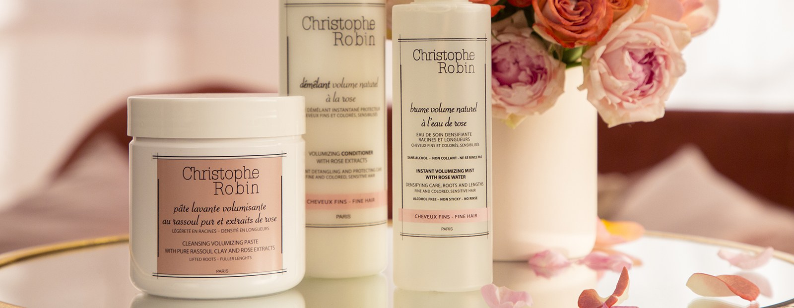 Lançada em 2013, a linha de produtos para volume com extrato de rosas foi uma das primeiras linhas de volumizadores dedicados a cabelos processados. É com muito orgulho que Christophe Robin apresenta sua nova pasta para limpeza e volume com argila rassoul e extrato de rosas. Esta fórmula exclusiva cria um volume real, perceptível desde o primeiro uso, com efeitos que se intensificam a cada dia.