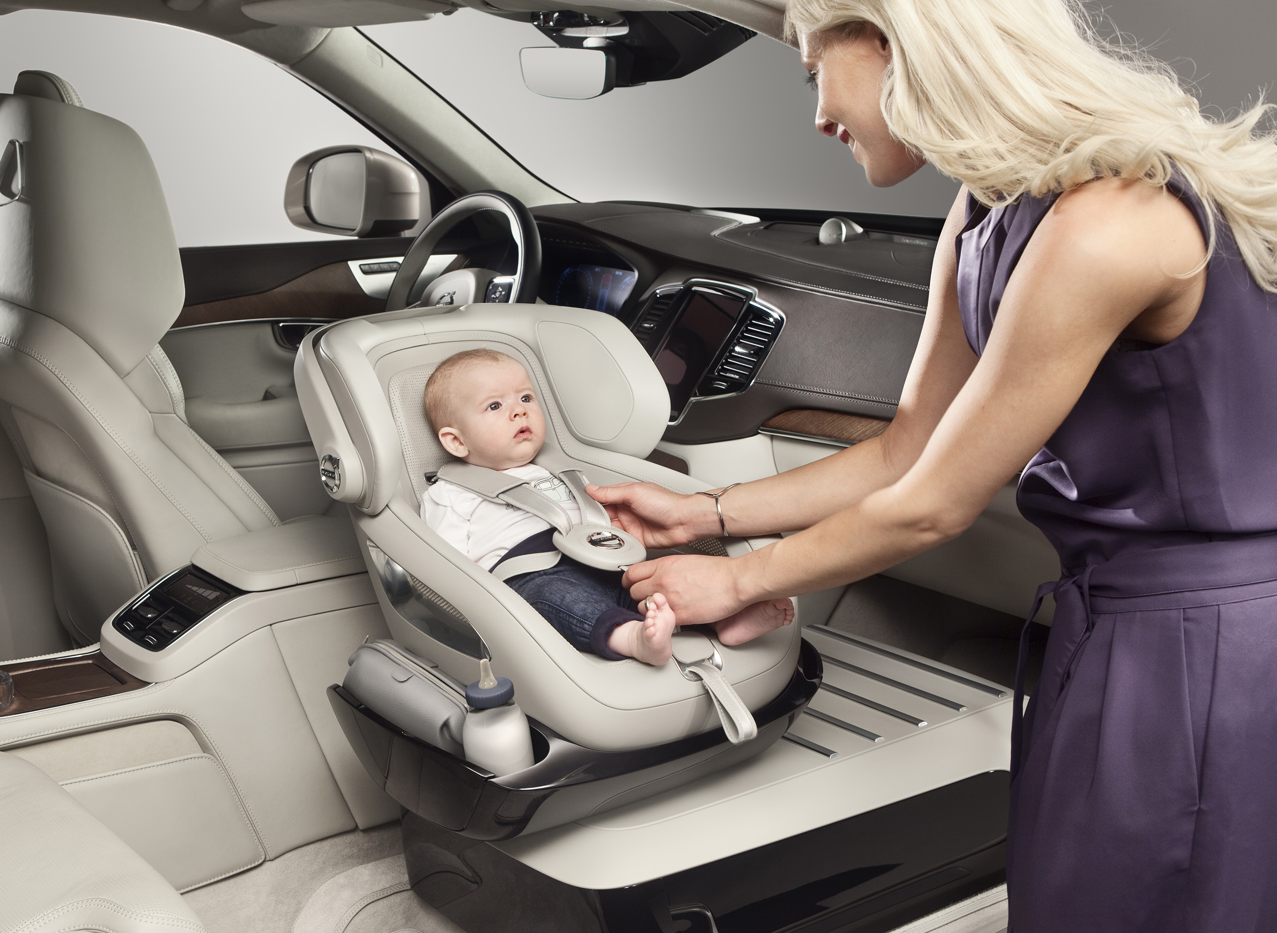 "Безопасность, удобство и эмоциональные факторы перевешивают все остальное. Даже сидя на заднем сиденье, родители смогут поддерживать визуальный контакт с ребенком, а бутылочка с детским питанием всегда будет поддерживаться в подогретом состоянии в подстаканниках XC90 Excellence с функцией подогрева. Такие условия заметно облегчат поездку как родителям, так и маленьким детям. Это решение для перевозки детей будет играть важную роль в процессе создания автомобилей с автономным управлением", - добавляет Тиша Джонсон.