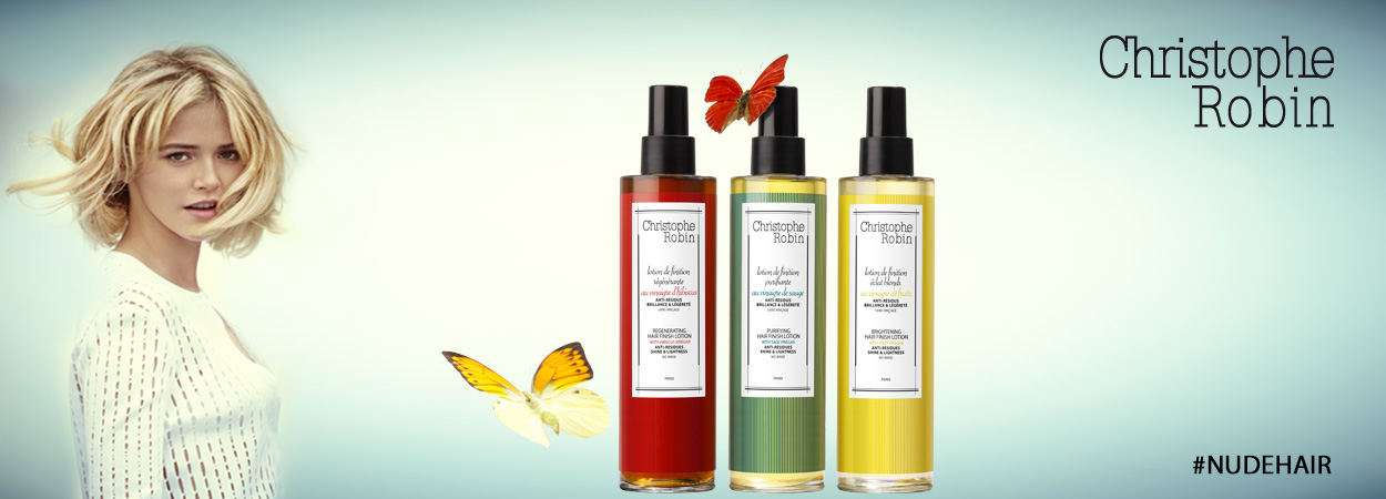 Christophe Robin’s new finishing lotions with botanical vinegars are ideal for an instant refreshing effect.