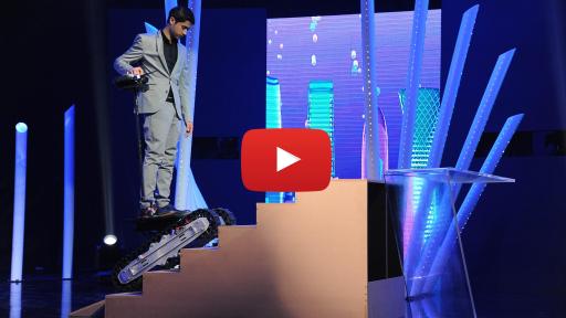 Next, Hussam demonstrated how his Automatic Stair Climber Machine uses robotic, tank-style treads for users to ascend stairs without effort at the press of a button. Rounding out the group, Abdullah debuted his Airport Smart Chair, a lounger with many automated features, including an alarm that notifies travelers when their plane begins boarding, even if they are sleeping.