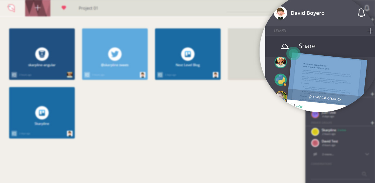 Skarpline rethinks team collaboration, making it more intuitive and user-friendly. Instead of getting unorganized individual messages or emails, users focus on important projects. All relevant communication is found in one place. The Skarpline tool thinks like people think, making it much more effective.