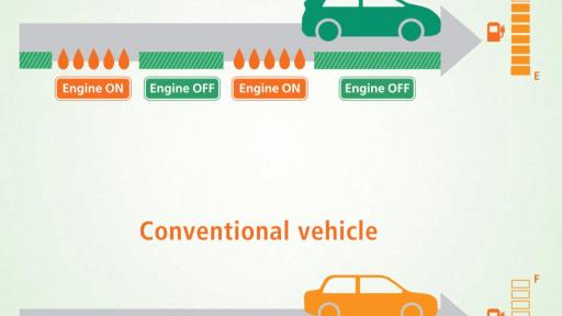 When accelerating, the vehicle uses an electric motor that does not require gasoline to accelerate efficiently and powerfully. In response to driving conditions, the system efficiently combines power from the electric motor and petrol engine automatically. When the vehicle has stopped, the system also automatically shuts down the engine to avoid wasting fuel during idling. The cumulative effect of preventing gasoline wastage in this manner means Toyota’s hybrid technology can provide dramatically better fuel efficiency than any other vehicle in its class. There is no need to charge the battery using external equipment. The hybrid system automatically charges the battery by using electricity generated each time you apply the brakes.