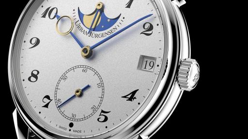 Urban Jürgensen is also pleased to present the new Jules Collection with two new models, Reference 2240 and 2340. Both models share new contemporary tapered lugs in a classic design on a convex and concave curved case with a diameter of 40 mm. The dials of these two models share the dial finishing technology of the 1741, the handcrafted, delicate and time-consuming Grenage. Reference 2240 comes in rose gold with black engraved Arabic numerals, central seconds and date. Reference 2340 comes in white gold, with small seconds, power reserve, date and moon phase indicator.