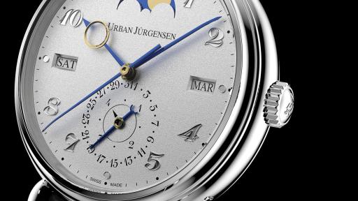 In the Jürgensen 1745 Collection, Urban Jürgensen is introducing a new model, Reference 1741 in Platinum with Perpetual calendar, leap year indicator and moon phases. The Reference 1741 dial is handmade using Grenage dial making and fitted with the Urban Jürgensen white gold Arabic numerals appliques. The creation of the moon disk involves more than 20 different operations and the result is a unique, tiny wonder of classic workmanship that is rarely found in timepieces nowadays.