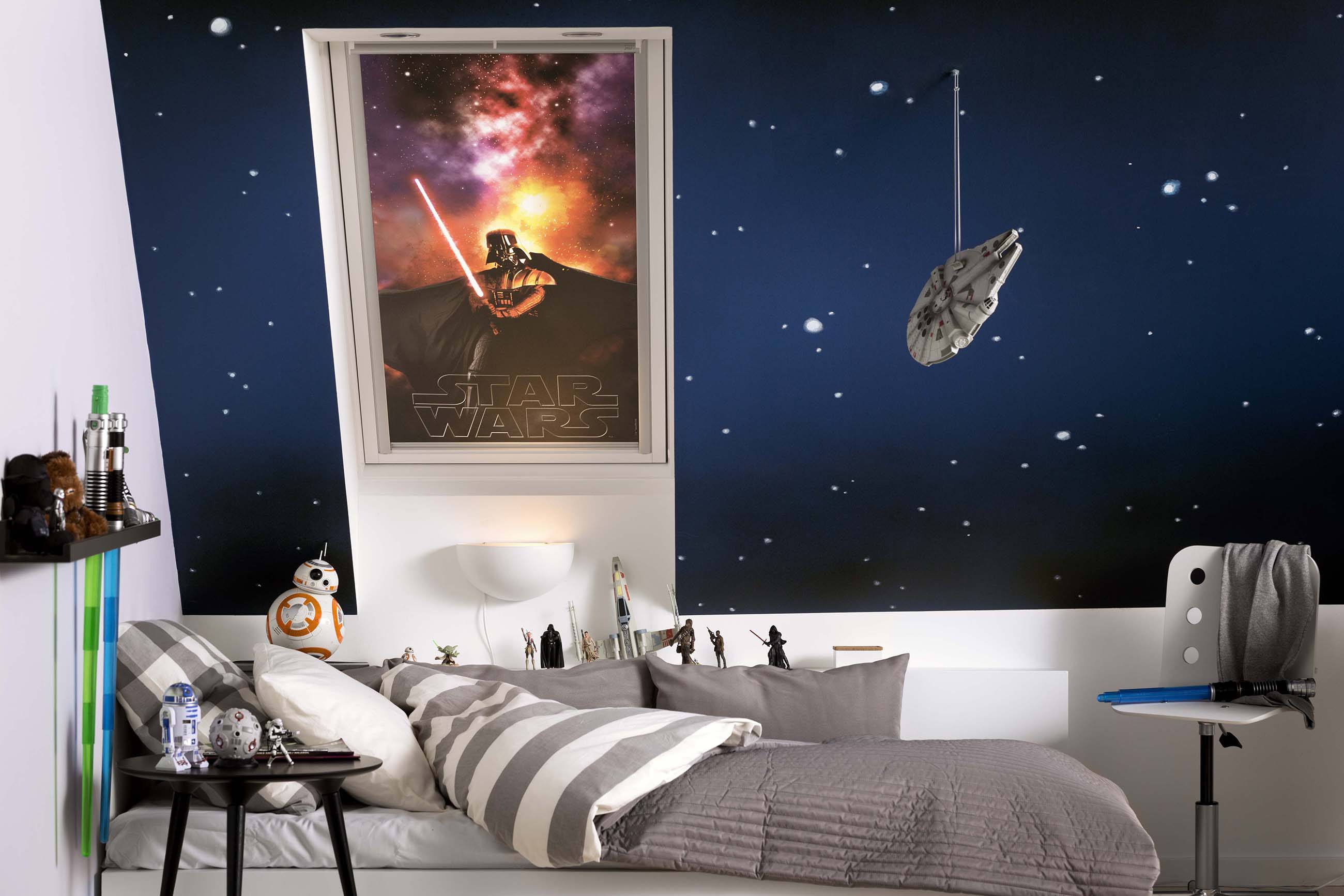 To help families shape the perfect environment for boys and girls, for play and rest, Disney and the VELUX Group extended their collaboration with a series of total blackout blinds inviting children and their parents to join the popularity of Star Wars:The Force Awakens and to personalise and accessorise the children’s room in true Star Wars fan style without compromising on optimal sleeping conditions.