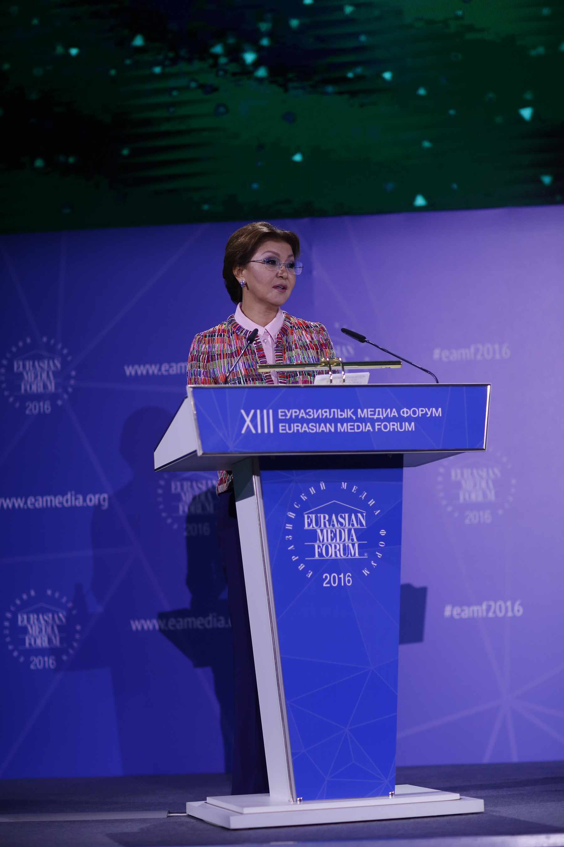 The EAMF was founded on the initiative of Dariga Nazarbayeva in 2002 as a non-political and non-profit organization dedicated to open discussion of topical issues and problems affecting East and the West. Over the years the Forum has expanded the boundaries of its interests beyond the Eurasian continent, as a calling card of Kazakhstan, a unique interactive world-class platform, which annually gathers more and more influential participants.