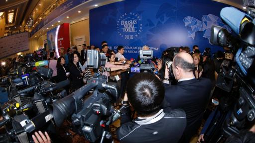 The total number of delegates attending the XIII Eurasian Media Forum was 567, including 248 from foreign countries. The discussions involved 48 speakers and experts, as well as interventions from the floor. Representatives of 185 media, including 82 foreign and 103 Kazakh, took part.
