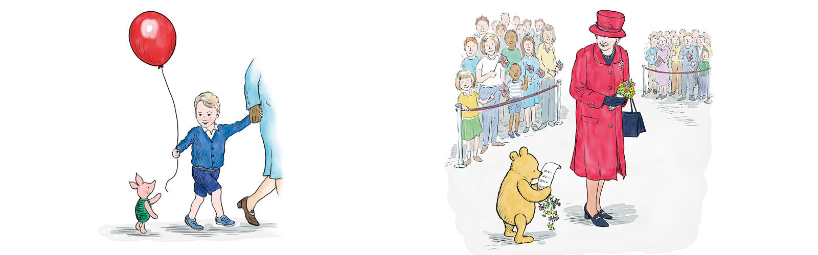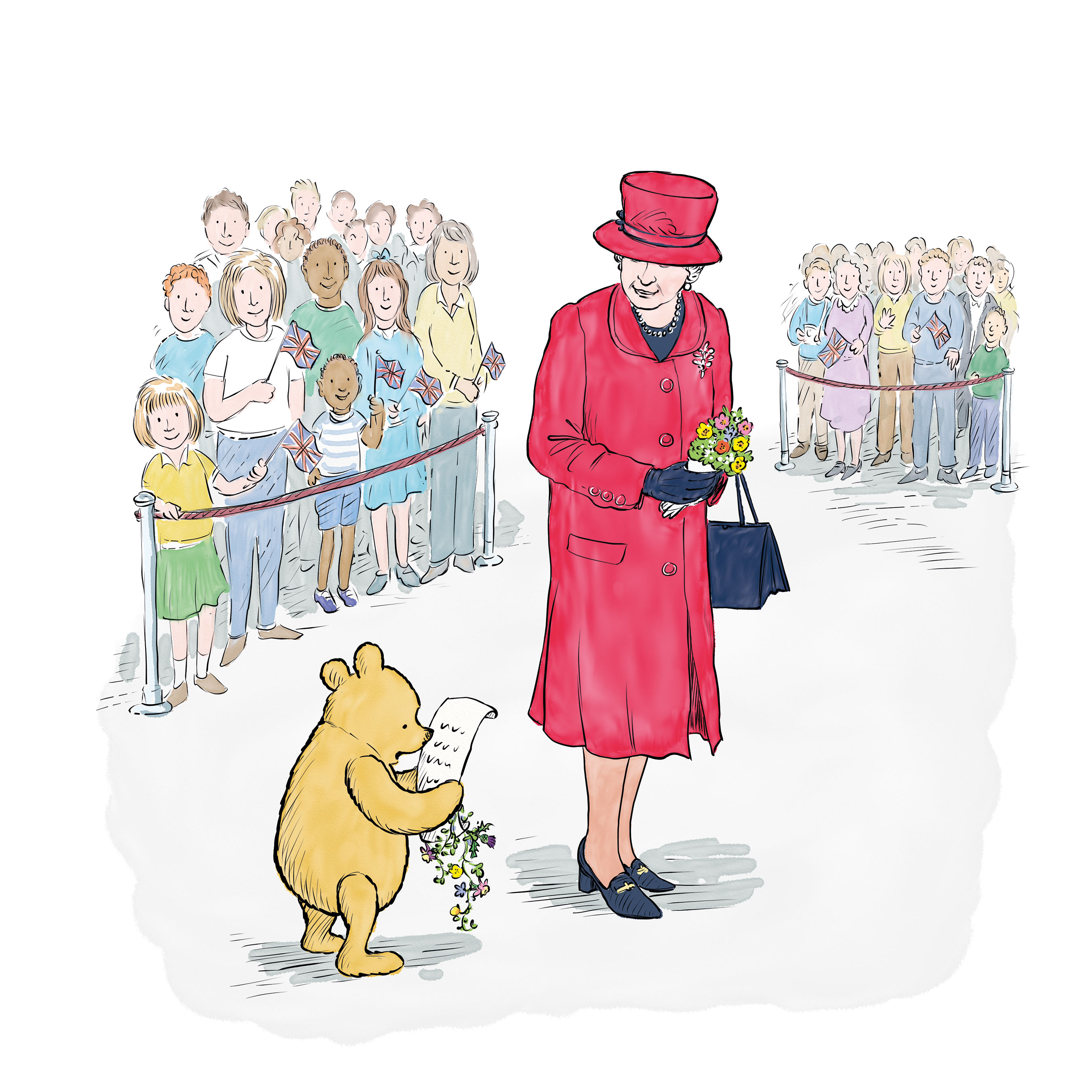 Winnie-the-Pooh has had previous links with Her Majesty The Queen, with The Duke and The Duchess of York being presented with a Christopher Robin china nursery set with hand-coloured pictures of Christopher Robin, Pooh and friends, as a gift for a young Princess Elizabeth, who is believed to have loved the Winnie-the-Pooh stories as a child. The 1926 A. A. Milne book, Teddy Bear and the Other Songs from When We Were Very Young, was also dedicated to Princess Elizabeth upon her birth when it was published – though the new adventure is the first time the much-loved bear has ‘met’ Her Majesty in one of the Winnie-the-Pooh stories.