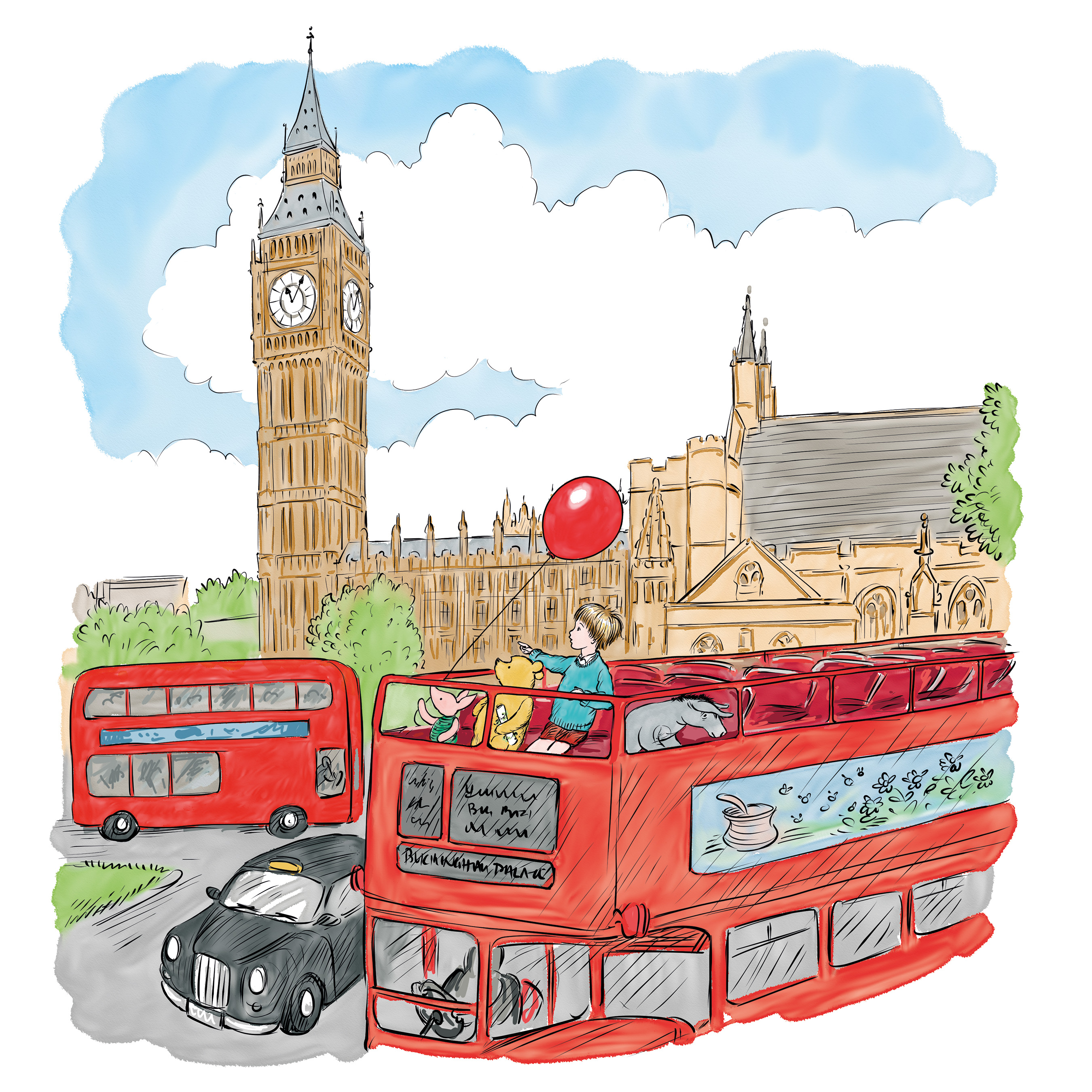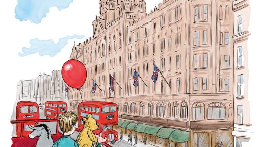 Featuring Pooh’s first ever meeting of the Royal Family, the tale beautifully presents the loveable bear and his friends embarking on an unforgettable journey from the Hundred Acre Wood to London with the wish of delivering their own thoughtful 90th birthday presents to The Queen. Illustrations drawn in the classic E.H. Shepard style by Mark Burgess see the nation’s favourite bear and friends travelling through London on an open-top bus, taking in the sights including Trafalgar Square and Buckingham Palace guards, before a chance meeting with The Queen, which allows Pooh to present their birthday gifts.