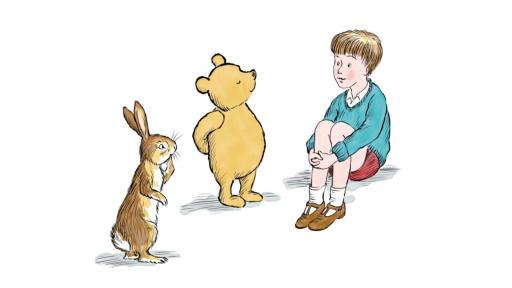 "Bear," announced Christopher Robin solemnly. "That hum is fit for a Queen. That hum shall be The Queen's present. Owl shall write it out and you and I and Eeyore shall deliver it to Buckingham Palace. And Piglet must come too because London is a very big place indeed and even small animals, if they are very good friends, can make everything alright."