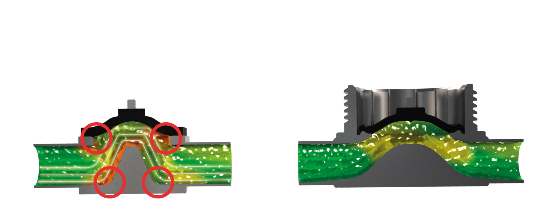 Rouge - Involves the precipitation and spread of fine red-brown ferric oxide or hydroxide particles from the place of origin to associated systems. It can often be found in circulation pumps, diaphragm valves and inside tanks equipped with static spray balls.