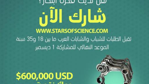 Applications for season 9 are now open for Arab nationals between the ages of 18-35. Please visit www.starsofscience.com for more details.