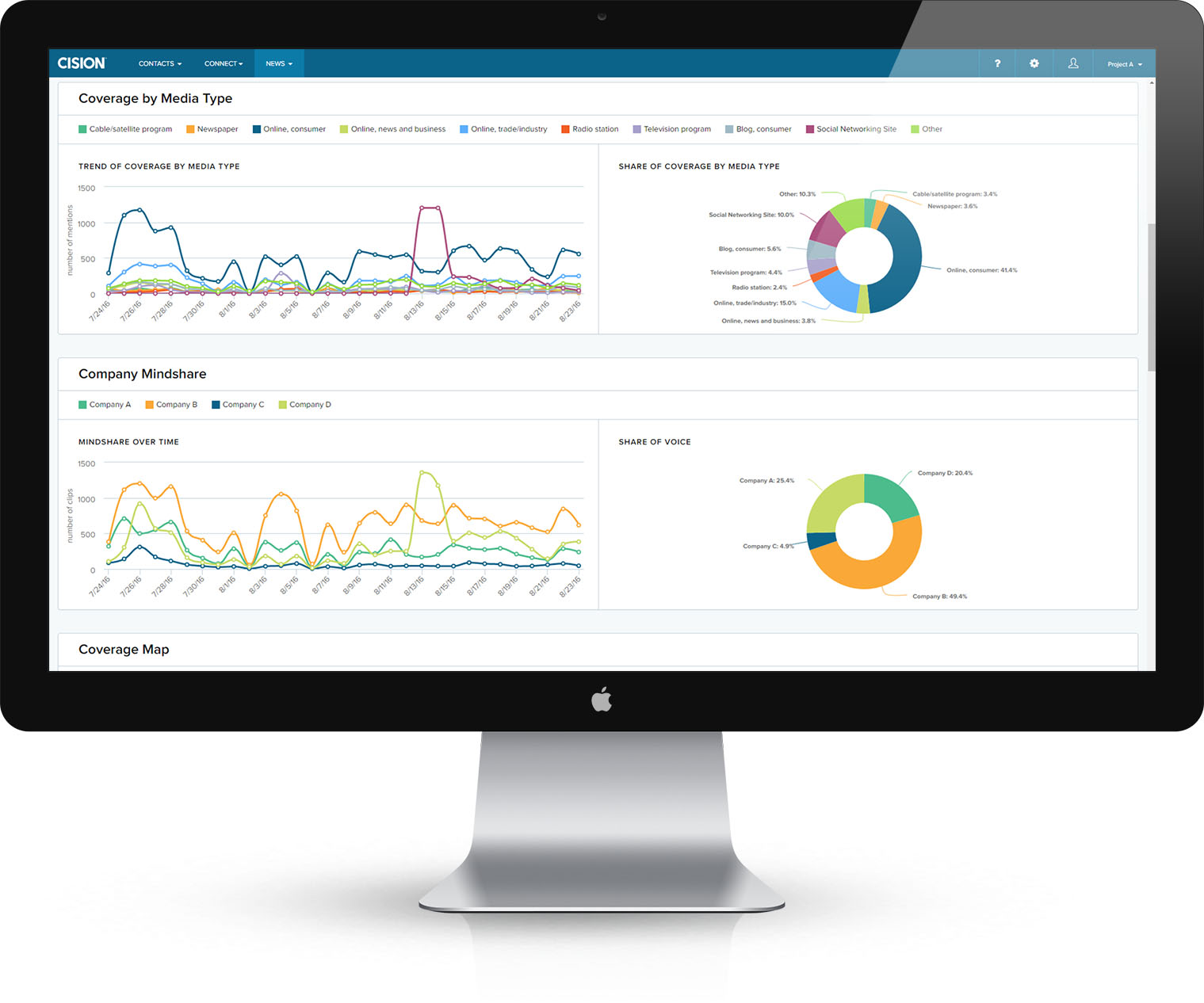 The Cision Communication Cloud includes harmonised features to connect clients with an ecosystem of partners, data, content, measurement and strategic services, including the ability to: