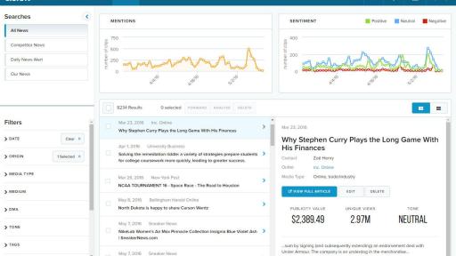 - Listen to media channels for brand mentions, competitive activity and tending topics that will inspire compelling content with insights covering over two million daily news stories internationally across online, print, broadcast and social channels.