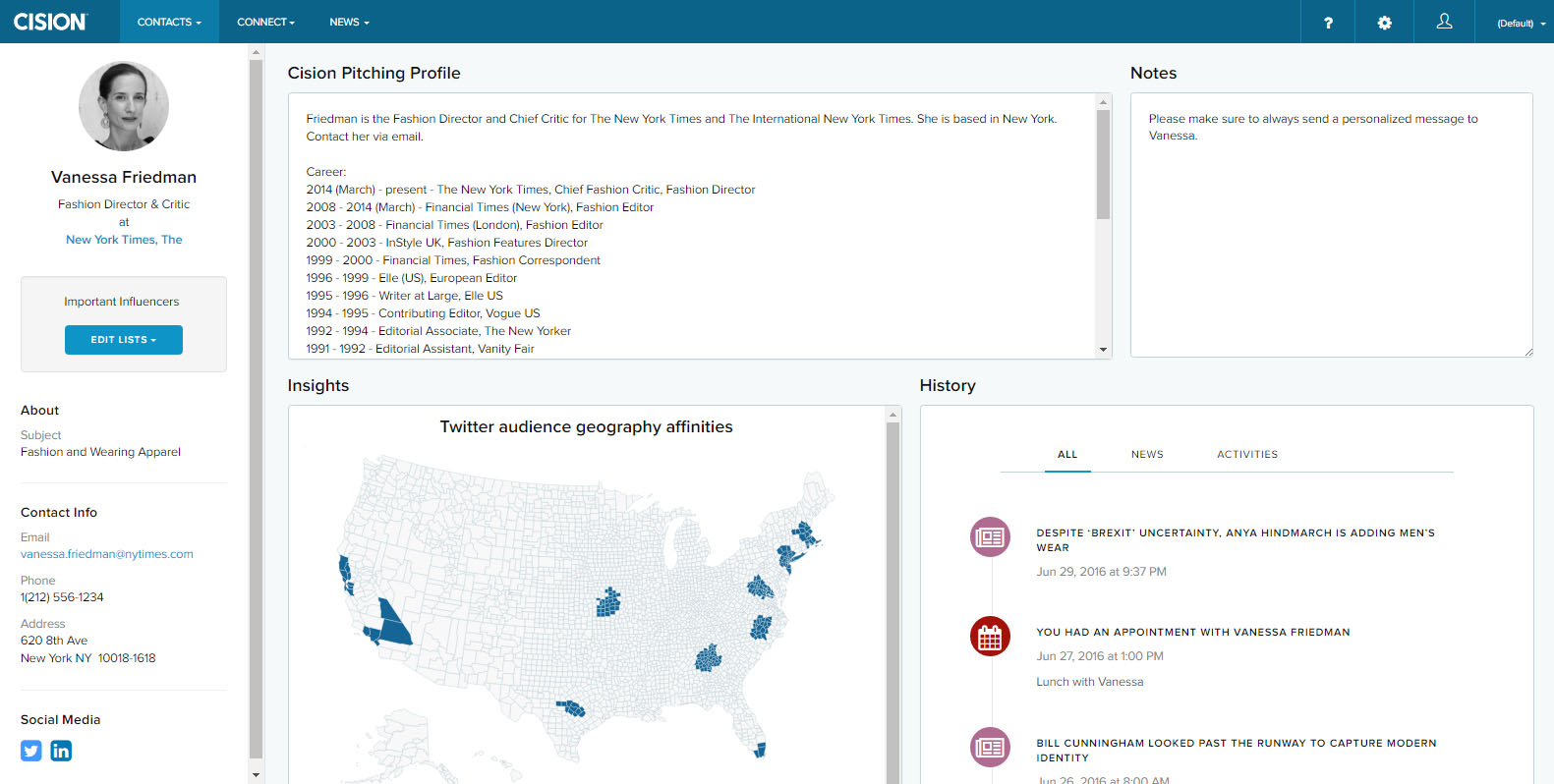 - Target and build relationships with media and influencers that fuel stories and inspire targeted audiences to take action in real-time. New technology and data science combine to create an advanced source of over 1.6 million media contacts, outlets and editorial opportunities.