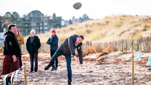 In total, the crew invited twenty-one Andrews, and their loved ones, to come to St Andrews and join the St Andrew’s Day festivities on 25 – 27 November. As special guests of the nation, the Andrews had the opportunity to take part in their very own Highland Games on West Sands, the beach famous for featuring in Chariots of Fire. As befits the Home of Golf, the Andrews got the chance to test their swing on the golf course, feast on cracking food and drink and try their hand at land yachting.