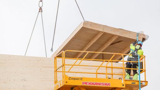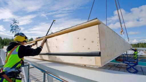 Utilizing prefabricated wood elements is a surprisingly fast option for on-site construction. For example, up to 1500 m2 of Kerto® LVL (Laminated Veneer Lumber) roof panels can be assembled within a single working day.